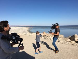 JUSTIN THOMSON: Bombay Beach is about 2 1/2 to 3-hour drive from Los Angeles, depending on traffic. If you leave at rush hour as I’ve found out, it’s 4 hours. Polina, and Rory, and Greg piled into a minivan and they drove the night before. I had work to do in Los Angeles, so I could only get to set in the early morning. Then the parents and the 2 children, they drove out separately, along with the makeup artist. Then we had arranged an AirBnB in the nearby about 30 minutes from Bombay beach as a little bit of a base came for everybody to stay overnight, because it was a 2-day shoot.