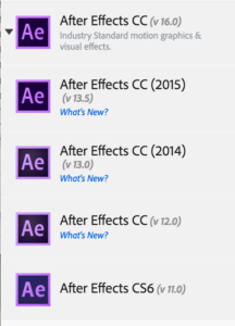 Here is a list of the versions of After Effects that are supported as of today. (Coincidently, a brand new version of CC just came out as I write this.)